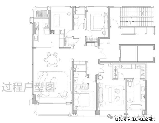主卧大套房设计带超大主卫和衣帽间,面积约50㎡,尺度感与市面上近300㎡的顶豪拉平。