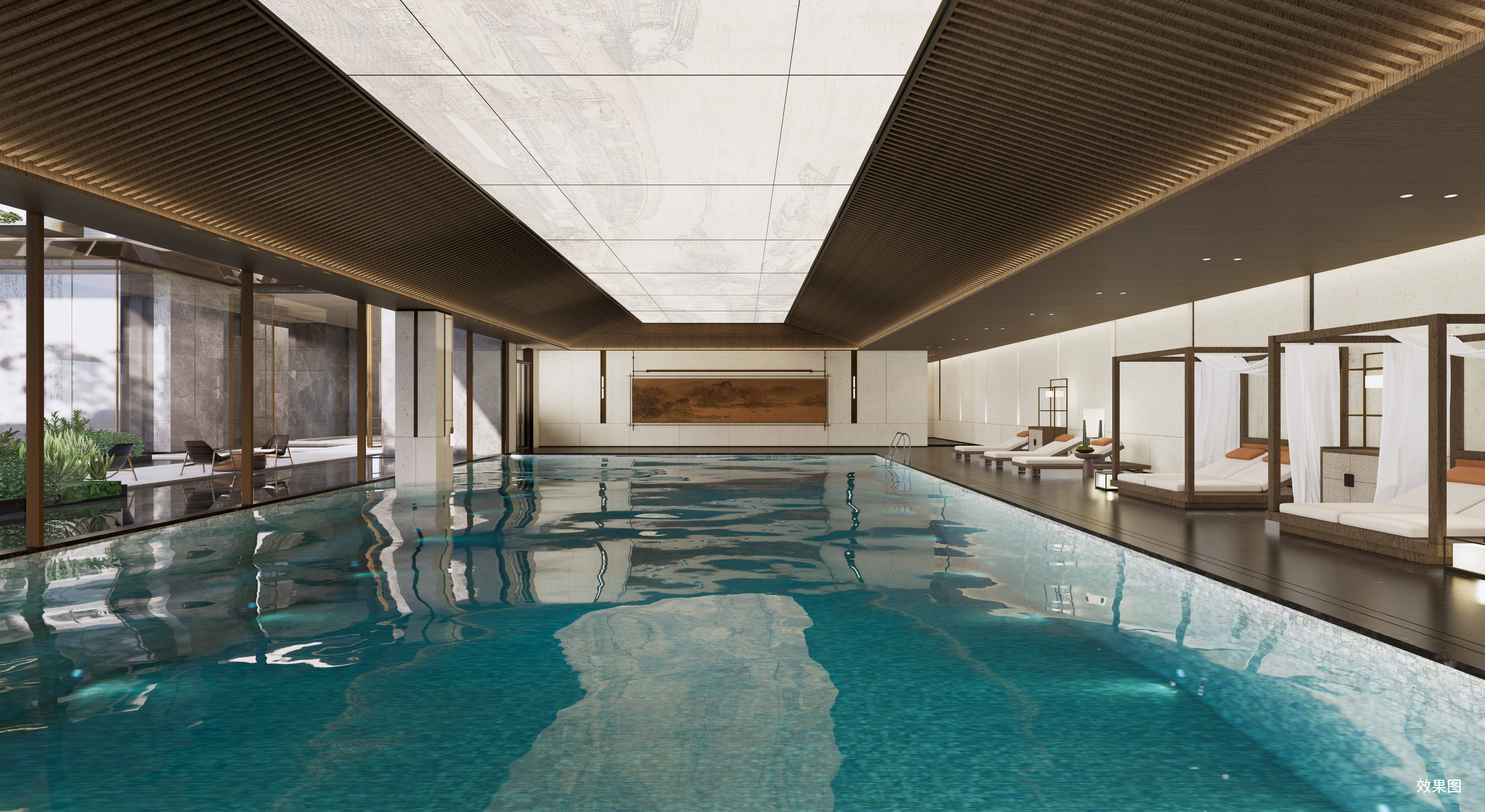 重金打造宋式会所,内含茶室、红酒雪茄吧、棋牌室、健身房、泳池、瑜伽空间等多种功能区域从容实现宋代文人六大雅事,无论是曲水流觞宴、古琴雅集,复刻宋代文人“雅集”场景