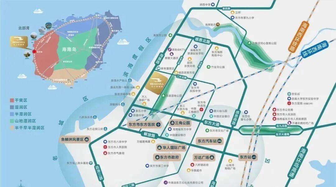 东方海鸥湾,位于海南自贸港西线中心城市东方市,东方市是中国西部陆海通道上与东盟合作的重要门户,也是海南自贸港建设的重要载体,环岛高铁通达全岛,打造约1.5小时三亚海口旅居圈;项目位于东方市滨海北片区,雄据东方市不可复制的一线海景资源,百米近海,举步海东方沙滩公园,背靠湿地公园,优享生态、商业、医疗、教育等醇熟滨海全龄段配套,还享有首创海鸥会一站式社区配套,打造足不出户度假生活圈,更有五星级酒店入驻奢享高端居住体验,五星物业代管品质服务。项目规划42-128㎡一线海景藏品公寓,退台式设计,推窗见海,纵享海趣生活;