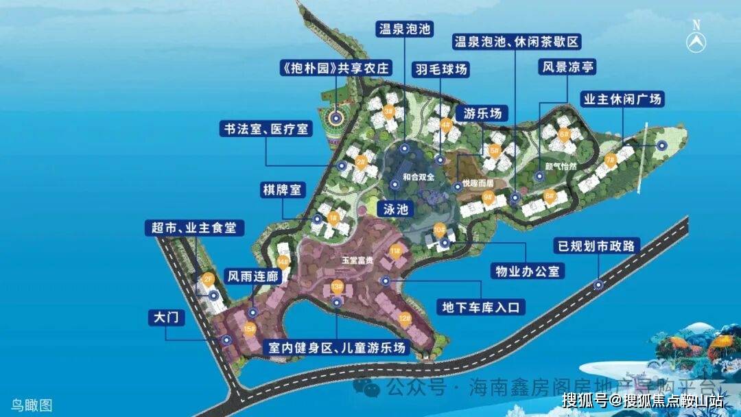 配套齐全,分中央综合区和家庭主题区两大乐享组团。中央综合区—“乐水逸泉” ,设立约437m²的成人泳池、约 138 m²儿童泳池以及约 155 m²温泉泡池。家庭主题区—“百凤归巢”,设立儿童游乐区、健身区、凉亭连廊。更有羽毛球场、书法室、棋牌室、医疗室、业主餐厅、生活超市等配套空间,缔造品质生活。