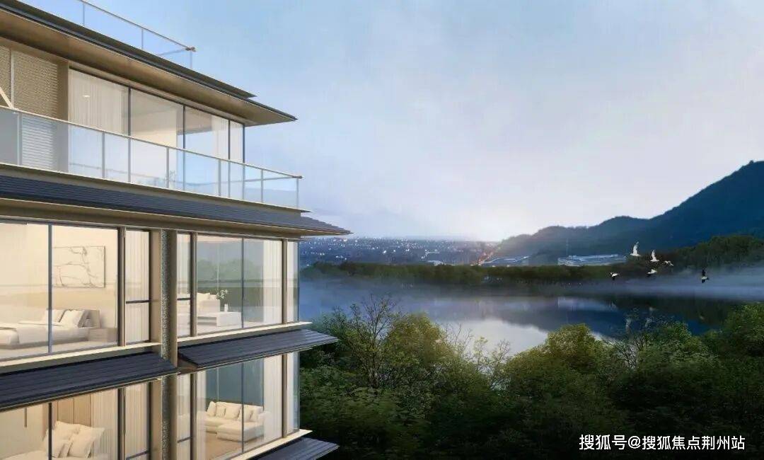 咏湖雲庐的外立面做了四面铝板,同时还延续了「云庐系」的超大窗墙比,延续绿城营造精髓,以整体化的立面形态,呼应白马晴波,玉屏烟树的湖畔诗画意境。