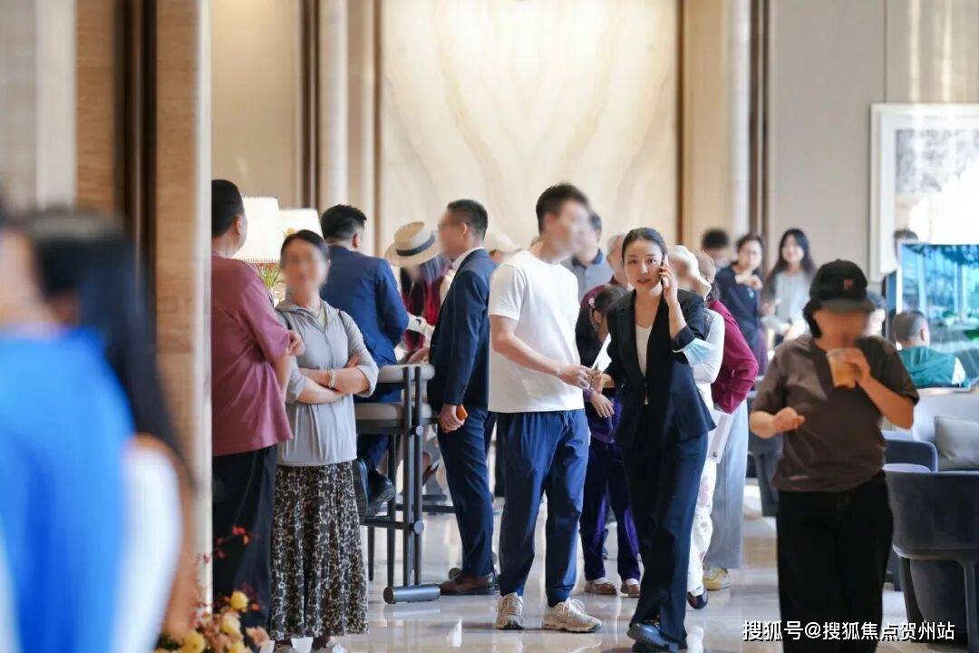 开发商为了保证看房体验设置了验资门槛,现场可以看到有很多预约参观的购房者在排队等候。