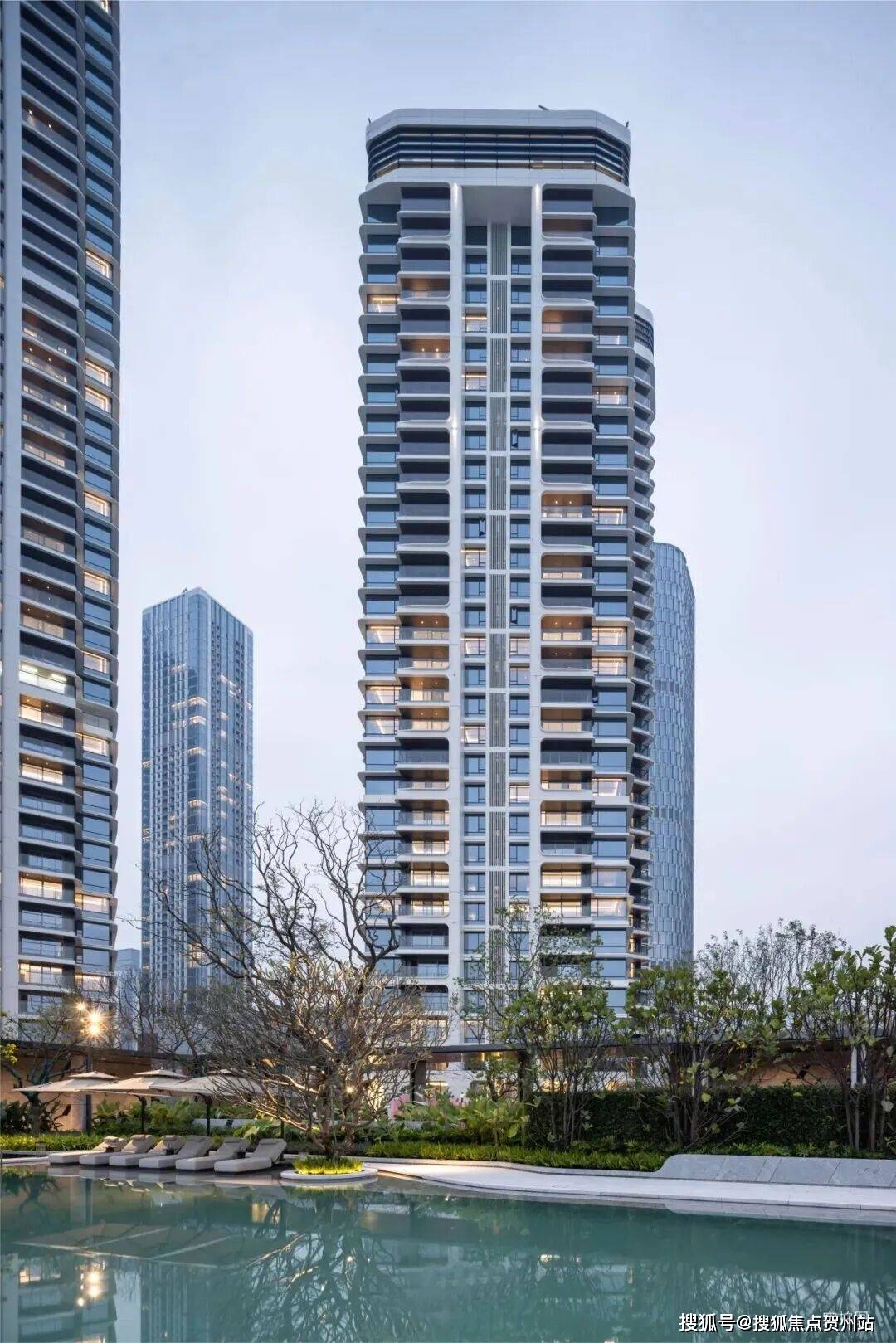 同时,楼体立面通过米色与香槟金色金属铝板的精妙搭配,以立面“反弧曲线”勾勒出层次丰富的“海风百褶肌理”,将深圳滨海生活的元素凝练为可传承的建筑视觉美学。