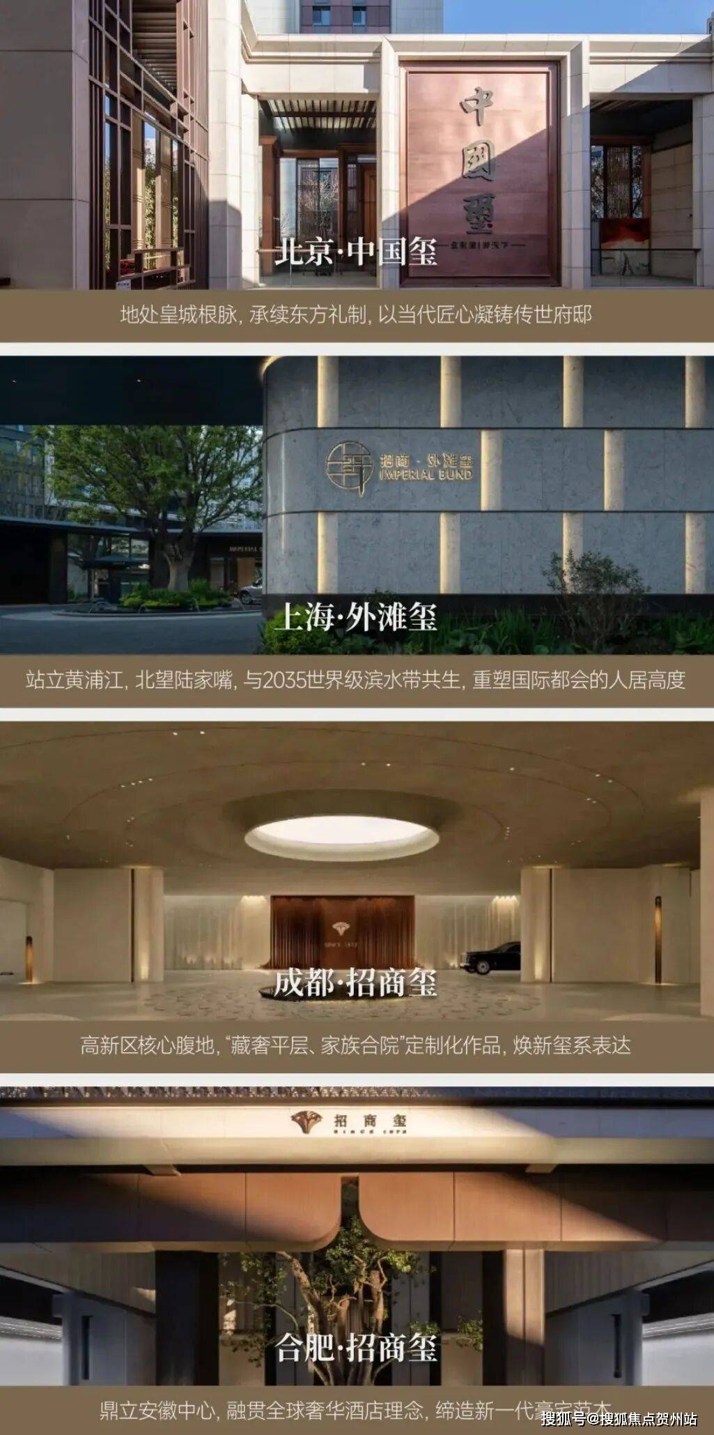玺系产品,是百年招商的顶奢旗舰产品,延续了全球塔尖豪宅的营造逻辑。玺系产品有着严苛的择址观和高级定制的产品观,目前全国仅10余个,且无不坐落于北上深等一线或区域中心城市的核心地段,每一座玺系作品都是城市顶豪的典范。